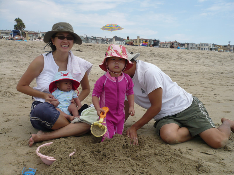 Yesterday, we went to Manhattan Beach for our church's annual beach day. Embarassingly, this is the first time we went to the beach all summer. Dad buried my legs in the sand, but I got out pretty easily. We also tried to save Noah's sand castle by building walls around it, but we learned a valuable life lesson yesterday--the ocean always wins.